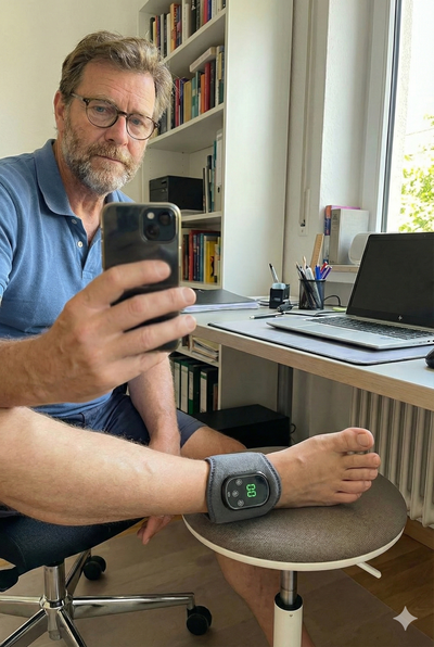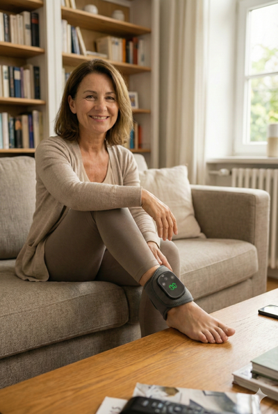 Während Sie sitzen, lesen oder fernsehen, laufen Wärme, Pulsationen und leichte Kompression automatisch.